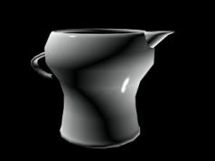 (8) 並再建立壺嘴(Spout)和壺把(Handle)連接上去(使用布林運算Boolean),形成一特殊容器(選用Aqua Glaze材質)。