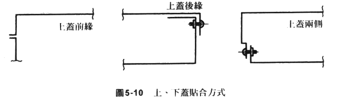 | 上蓋由後方套入時,其後緣的設計則貼合下蓋之外側,如圖5-8所示。 |