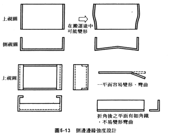 | 在邊緣處加折角,亦可增加強度,保持平面度,如圖5-13所示。 |