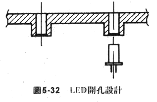 | 欲加裝LED或其他配合物之孔或開口時,開口之四周應有倒角或圓角以利裝配,如圖5-32所示。 | ||||