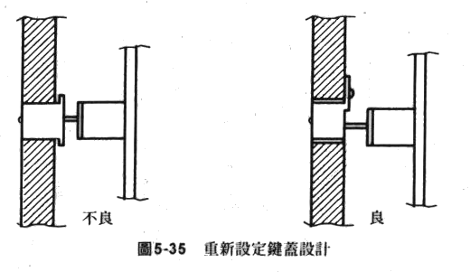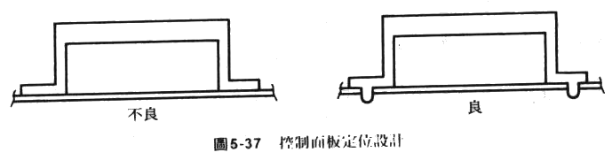 | 若有前後殼或土、下蓋配合的地方,儘量做後殼(下蓋)是嵌入前殼(上蓋),以防止由使用者一方,即可看到間隙(如圖5-33)。 | ||||