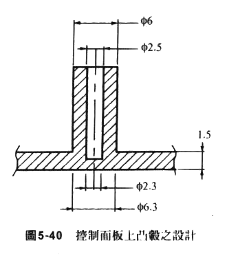 | 控制面板上固定印刷電路板(PCB)之凸轂(Boss)尺寸建議如圖5-40所示。 |