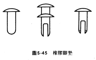可以設計成用卡的方式,如橡膠腳墊(Rvbber foot),或支撐墊片(Support spacer),使療養易裝易拆,如圖5-45所示。 |
