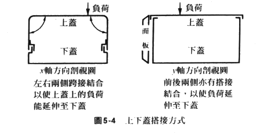 | 上蓋與下蓋組合,在四周應有搭接或扣接之強度需求,如圖5-4所示。 |
